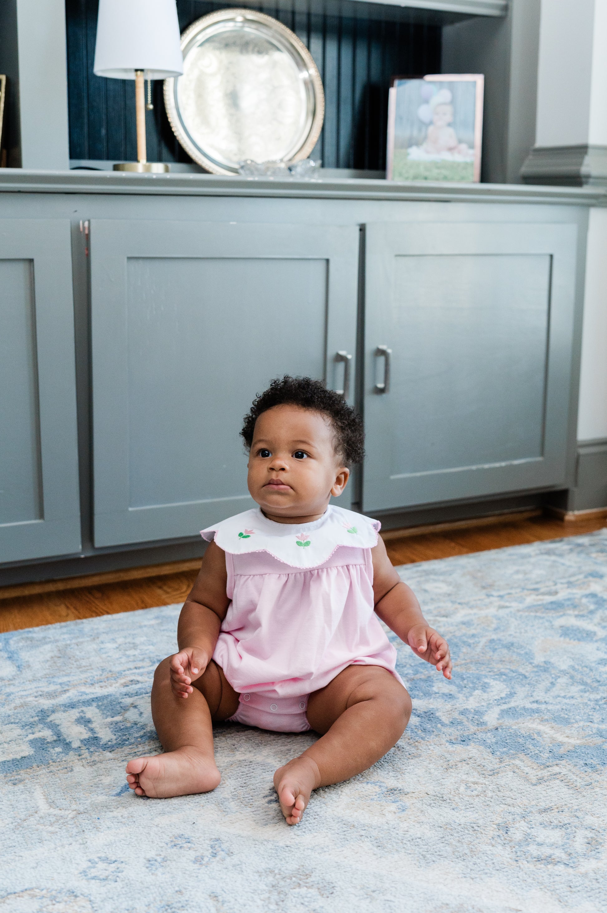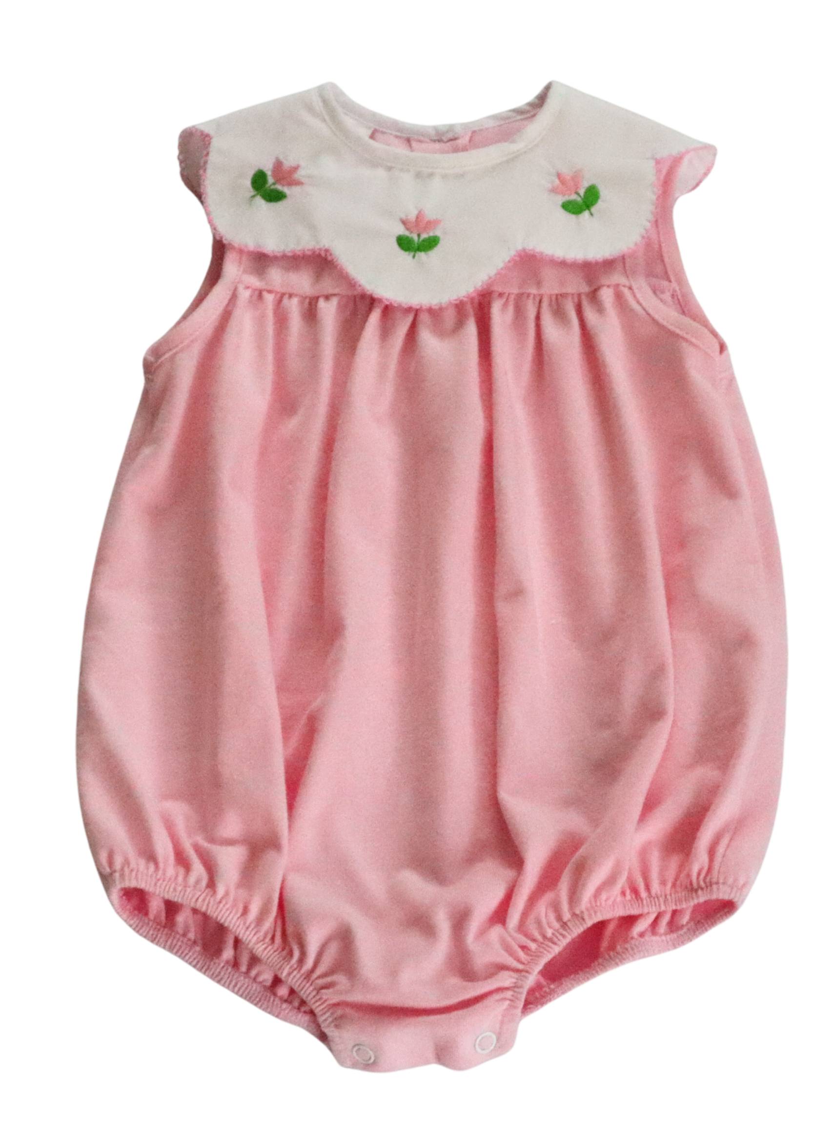 The Eloise Bubble is made for everyday play and sweet adventures. Crafted from a soft, stretchy poly-cotton knit for all-day comfort, it features precious embroidered tulips on a scalloped collar for an extra touch of charm.