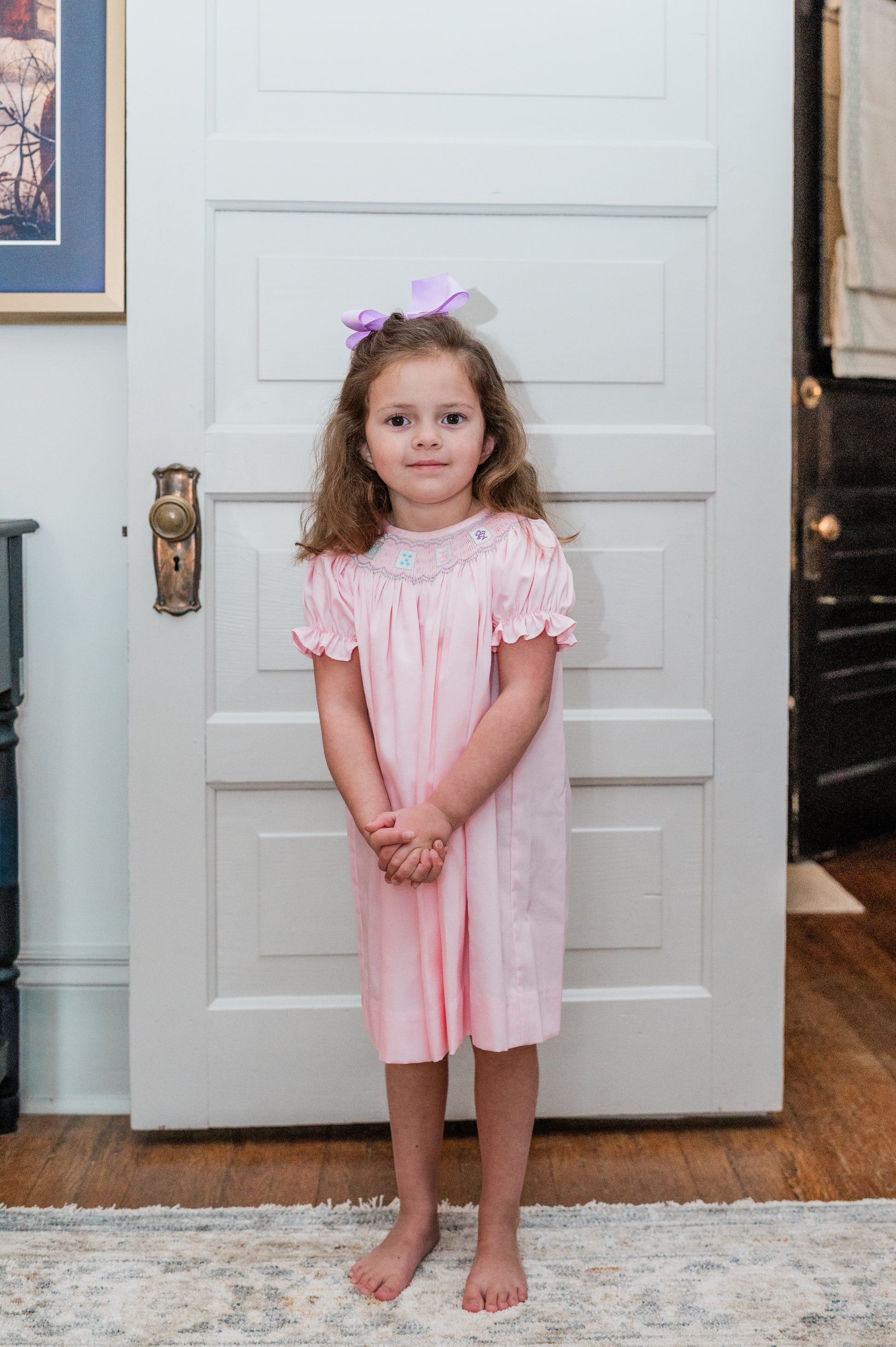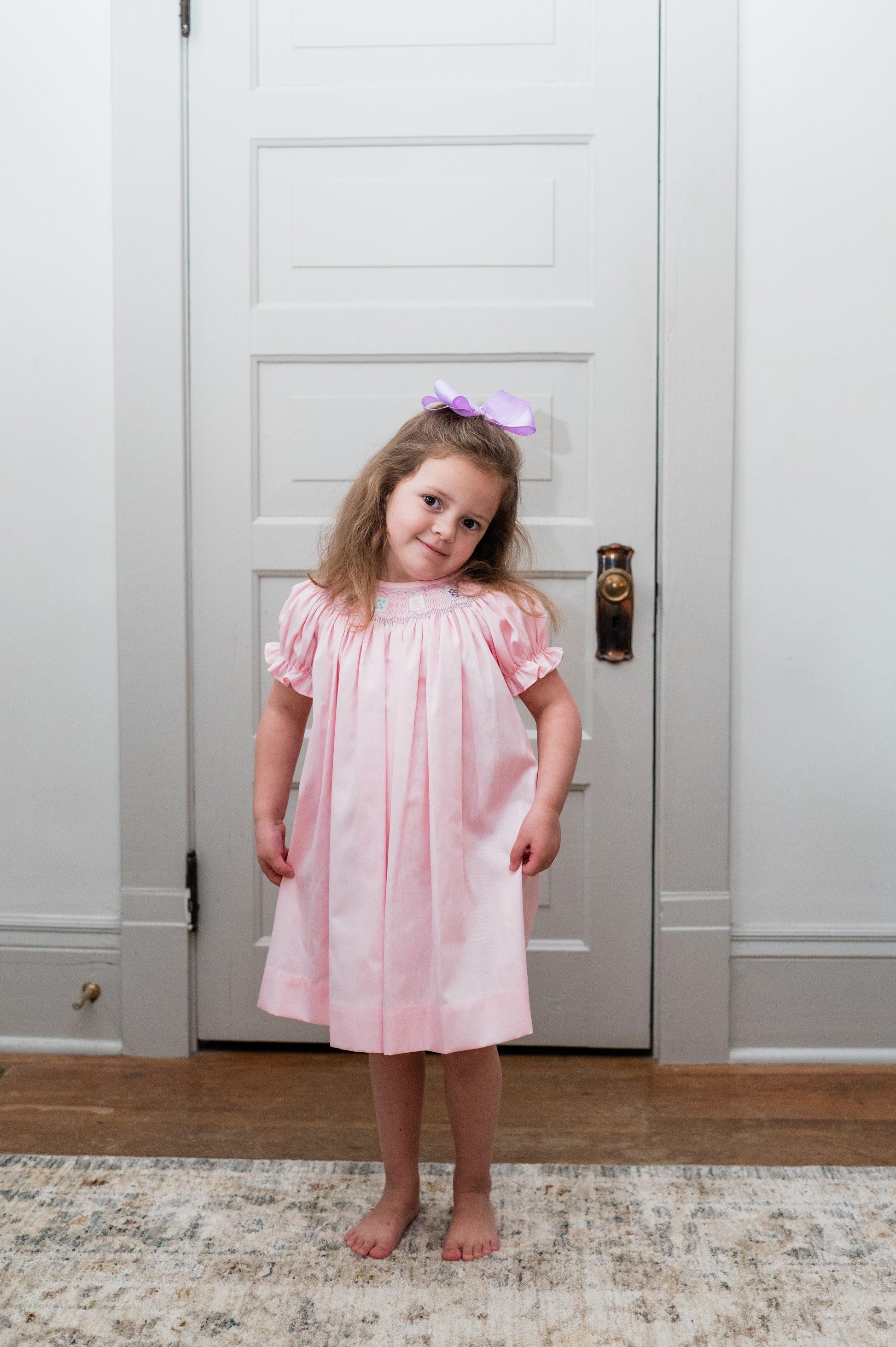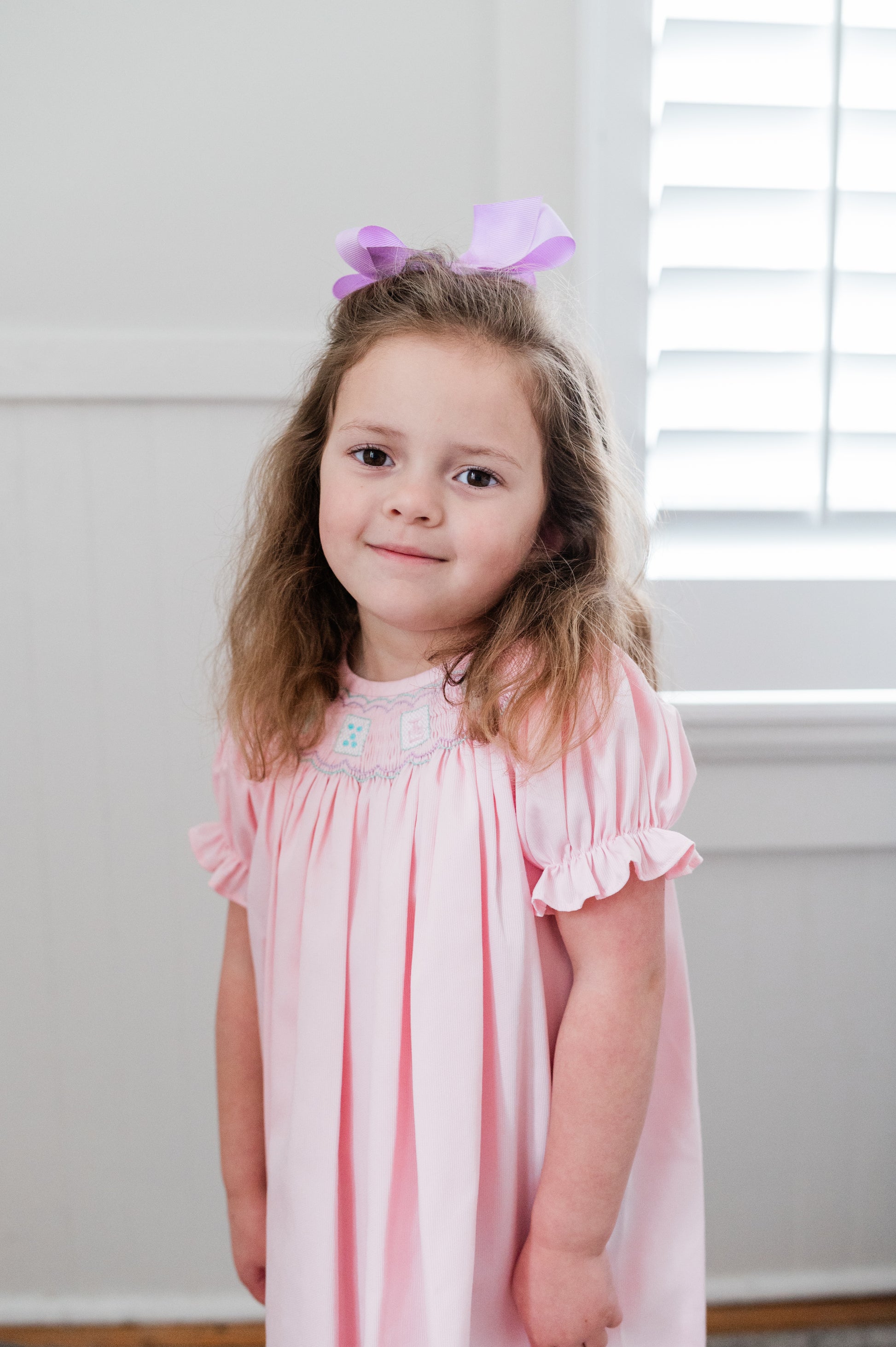 This sweet bishop features hand smocked pastel Mahjong tiles stitched across the yoke, framed with a delicate wave trellis above and below, the design is sewn on light pink piqué, it's perfect for a Mahjong playdate!